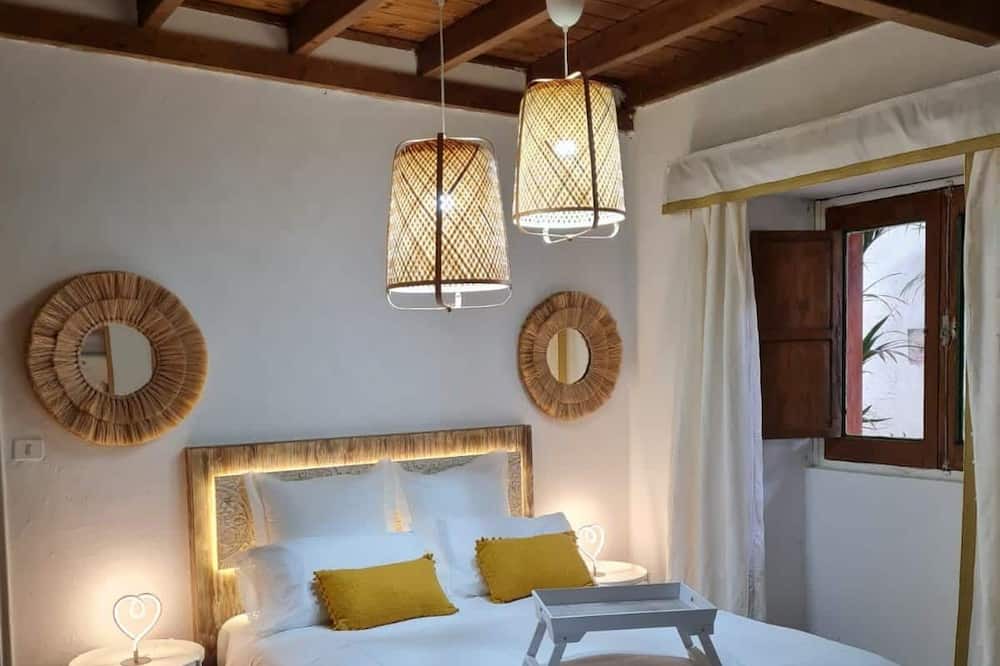 Beautiful Canarian house recen renovated with a spacious open living room that impresses with a beautiful high ceiling with wooden beams and the typical luxury furniture in rustic style.